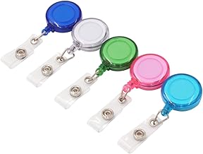 ノーブランド品 キーホルダーミニキーバック クリップ固定モデル キーリール 吊り下げ名札用リール アイドプラス 55-60cmケブラータイプ カラフル 5個セット