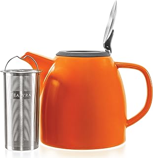 (1100ml, Orange) - Drago Ceramic Teapot w/Stainless Steel Lid & Extra-Fine Infuser - 1 Best Teapot To Brew Loose Leaf Tea by Tealyra (1000ml, Orange)