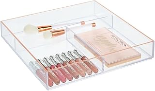 mDesign 幅広メイクアップオーガナイザー バスルームの引き出し 化粧台 カウンタートップ用 メイクアップブラシ アイシャドウパレット 口紅 リップグロス ブラッシュコンシーラー 12インチ x 12インチ クリア/ローズゴールド