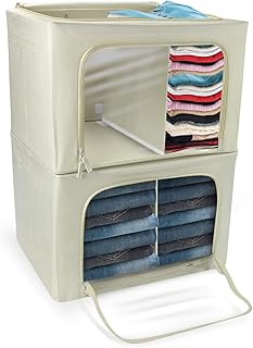 Sorbus 収納容器 仕切り付き 折りたたみ式 積み重ね可能 コンテナ オーガナイザーセット 大きな窓とキャリーハンドル付き 寝室 クローゼット整理 寝具 リネン 衣類 (2セクション – ベージュ)