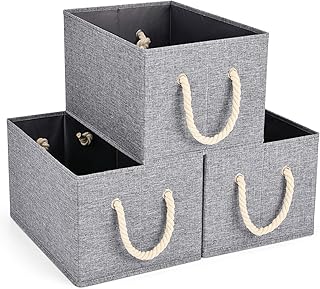 MaidMAX 布収納バスケット ビン キューブ 14.4×10×8.4インチ 収納棚 バスケット 引き出しオーガナイザー コットンロープハンドル 竹スタイル スラブ生地 ダークグレー 3個セット