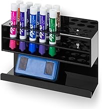 MyGift 16スロット 壁取り付け式 プレミアム ブラック アクリル ホワイトボード マーカーと消しゴム収納ホルダー オーガナイザー ラック
