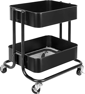 キッチンワゴン バスケットラック 収納ワゴン 2段 キャスター付 黑 HI-087