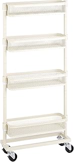SONGMICS キッチンワゴン キャスター付き スリム バスケットラック 収納ワゴン 4段 隙間収納 隙間ワゴン 幅13.5cm BSC065W01