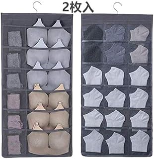 【2枚組】吊り下げ収納 ウォールポケット 下着収納 両面収納 20ポケット大容量 オックスフォード布 水洗い可能 ハンガー付き 靴 下着 ブラジャー ネクタイ ベルト 小物 収納 文房具整理 ブラの型崩れ防止 吊り下げ収納 スリム ブラケース 便利収納 サイズ80×40cm ランドリーネット2枚付き(グレー)