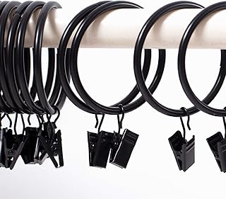 KINJOEK カーテンリング 60個 2インチ クリップとアイレット付き 内部直径 防錆 金属製 カーテンロッドループ 強力なフック付き 部屋 バスルーム パーラーウィンドウ用 ブラック