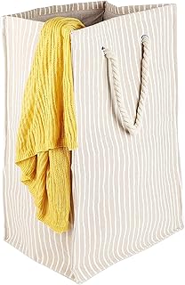 Juvale 折りたたみ式ランドリーバスケット ロープハンドル付き ストライプ (15 x 24 x 11インチ)